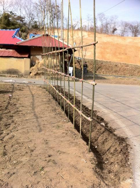 그 간격을 50cm로 하여 총 16개를 세워 좌우 총 3개의 대나무를 사용한다.