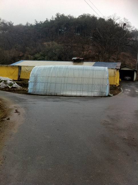 하우스 동 전체가 흔들려서 눈이 떨어지기 때문에