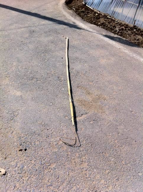 대나무가 잘 들어가도록 구멍을 넓히기 위한 용도로 쓰인 쇠 파이프이다.