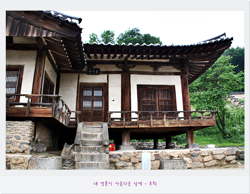 군자정은 남자들이 손님을 맞이하거나 글공부를 하는 공간으로 바깥쪽으로는 쪽마루를 돌려 난간을 세웠다고 한다.