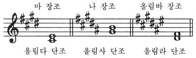 으뜸음 : 솔, 레, 라, 미, 시, 파, 도
