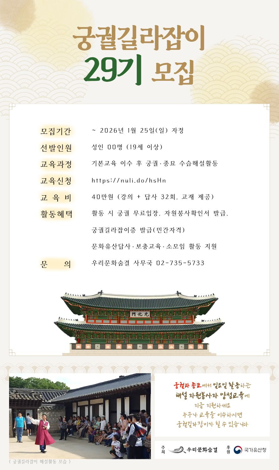 궁궐길라잡이 29기 교육생 모집 (일요일 활동)