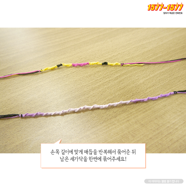 2. 손목 길이에 맞게 매듭 묶은 뒤 마무리