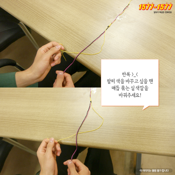 팔찌 색을 바꾸고 싶을 때는 매듭 묶는 실 색을 바꿔주면되요!