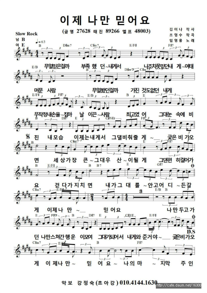 악보) 이제 나만 믿어요 - 임영웅 (2020 신곡) (미스터 트롯) /(남자 키 B) 작성자푸른 펭귄|작성시간20.05.05|조회수8,678 목록 댓글 0 글자크기 작게가 글자크기 크게가 악보) 이제 나만 믿어요 - 임영웅 (2020 신곡) (미스터 트롯) /(남자 키 B) 다음검색 현재 게시글 추가 기능 열기 북마크 공유하기 신고 센터로 신고 댓글 댓글 0 댓글쓰기 답글쓰기 댓글 리스트