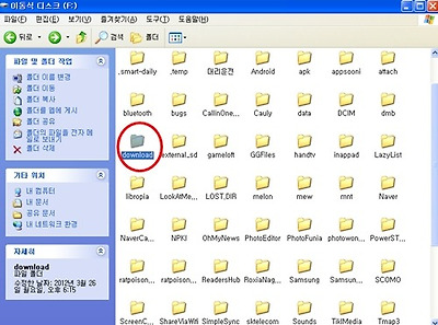 그리고 핸드폰무선인터넷으로 다운받은 것들은 다운로드 폴더에 저장되어 있습니다. 컴퓨터로 옮길시 어디 깔렸는지 헷갈리지 마시고 한방에 보내세요....컴퓨터에서 핸드폰으로 옮길 문서파일등도 여기에 저장하세요 물론 다른곳에 넣어도 되지만 여기저기 있으면 정신 사나우니 폴더로 정리 해두시는게 좋습니다. 자 이제 작업을 맞쳤으면 핸드폰의 처음 로봇이 나오는 화면에서 주황색으로 변해 있는 로봇의 "usb저장소사용" 버튼을 터치 해서 로봇이 다시 초록색으로 돌아 왔는지 확인합니다. 그런 다음 usb안전제거를 해서 연결짹을 뽑아주시면 됩니다. 그냥 막 빼면 아무래도 기기에 무리를 줄 수 있겠죠! |