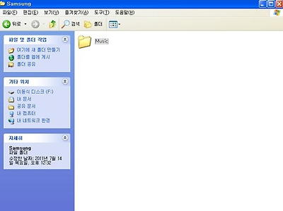 SAMSUNG폴더에 들어가면 MUSIC이라는 하위 폴더가 있는에 여기에 음악을 저장하시면 됩니다. 그러면 핸드폰의 기본 장착 어플인 뮤직어플로 음악을 바로 재생할 수 있죠