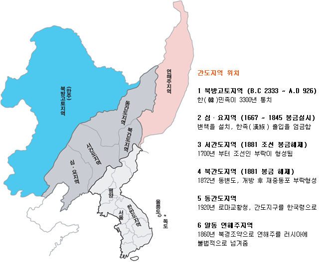 그 후 무산, 온성 사이의 주민이 도강하여 개간하는 자가 점차 급증하여 백두산 동쪽 기슭의 비옥한 토지는 개간하지 않은 곳이 없게 되어 이를 모두 일컬어 간도(間島)라 불렀다. 따라서 두만강과 압록강 대안지역의 개간지역을 자연스레 간도라 부르게 된 것이다. 그리고 간도의 범위는 두만강의 조그마한 삼각주에서 시작하여 한민(韓民)이 개간한 곳은 모두 간도라 부르기 시작하여 점차 확대되었음을 알 수 있다. 간도는 백두산 동쪽과 두만강 대안을 동간도라 부르며, 압록강 대안지역과 송화강 상류지역의 백두산 서쪽을 서간도로 크게 구분된다.