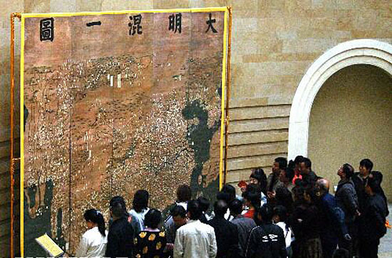 그런데 멘지스가 말한 ‘세계 최초’는 사실이 아니다. 일전에 멘지스의 연구팀에서 필자에게 혼일강리도에 대해 문의해올 때까지도 멘지스는 그 사실을 모르고 있었다. 아래는 중국 명나라 초기의 대명혼일도大明混一圖(1389년)이다.