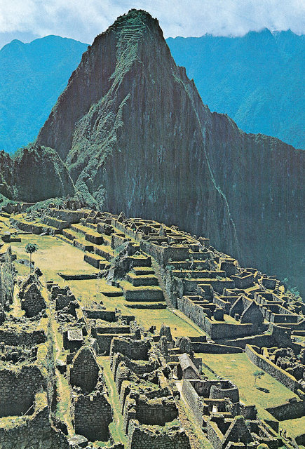 마추픽추의 유적. 페루의 쿠스코 서방 우루밤바강 부근에 있다. 신대륙의 유적에서 가장 유명한 것의 하나. 자연미가 뛰어나서 볼만하고 뒤에는 와이나피추라고 불리는 암산(岩山)이 있다.