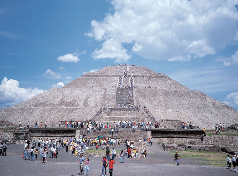 태양의 피라미드는 한 변이 225미터, 높이가 65미터나 되는 거대한 구조물이다. 그리고 태양의 피라미드와 짝 지워져서 달의 피라미드가 서 있는데, 이는 산 사람을 죽여 신에게 제물로 바치던 신전이었다. 나중에 이 신전을 발견한 아스텍 인은 이곳을 신들의 고향이라고 생각했다.