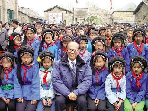 ▲ 리카싱 회장의 자선사업은 단순히 돈을 기부한다는 의미가 아니다. 직접 학교 등을 찾아 어려운 이들을 격려한다. 중국 소수민족의 초등학교를 찾은 리 회장.