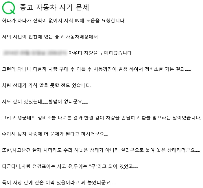 지식인에 올라온 전손 차 고장에 의한 피해사례