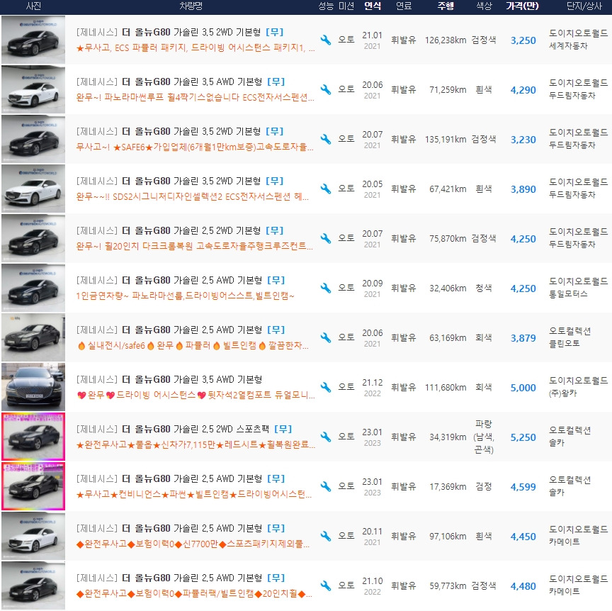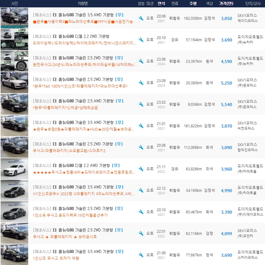 이어서 2025년 3월 13일자 중고더올뉴G80