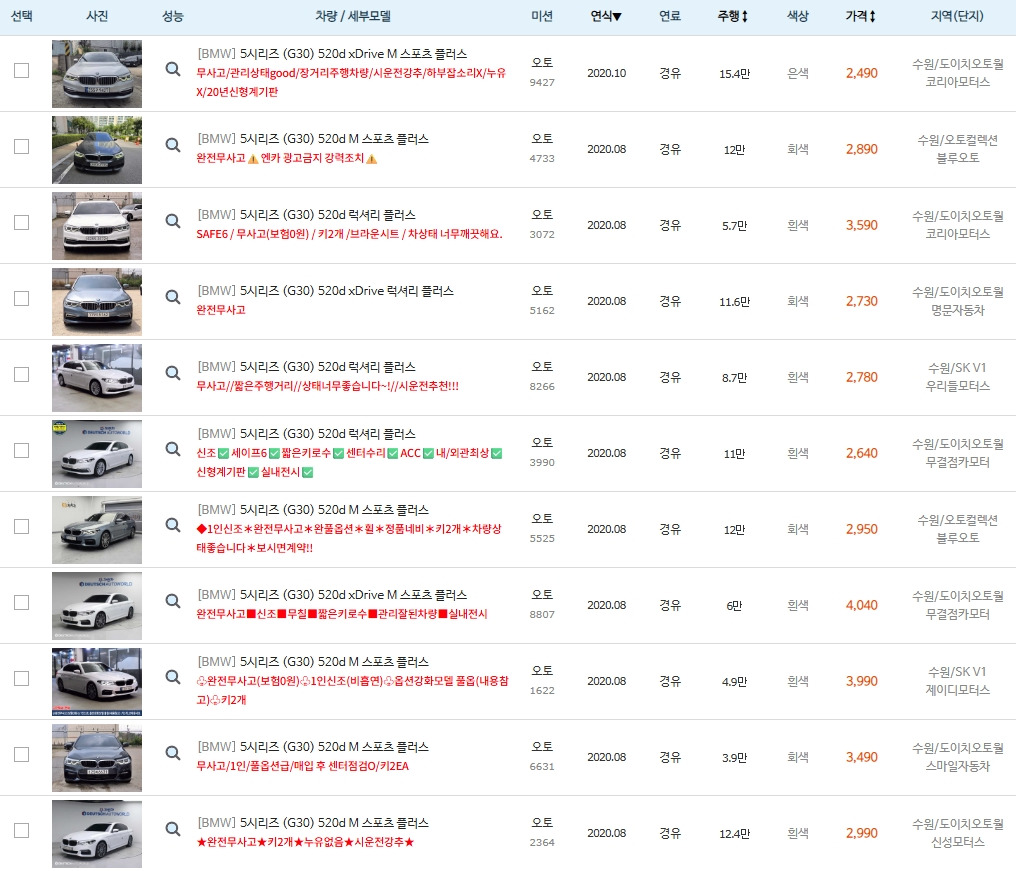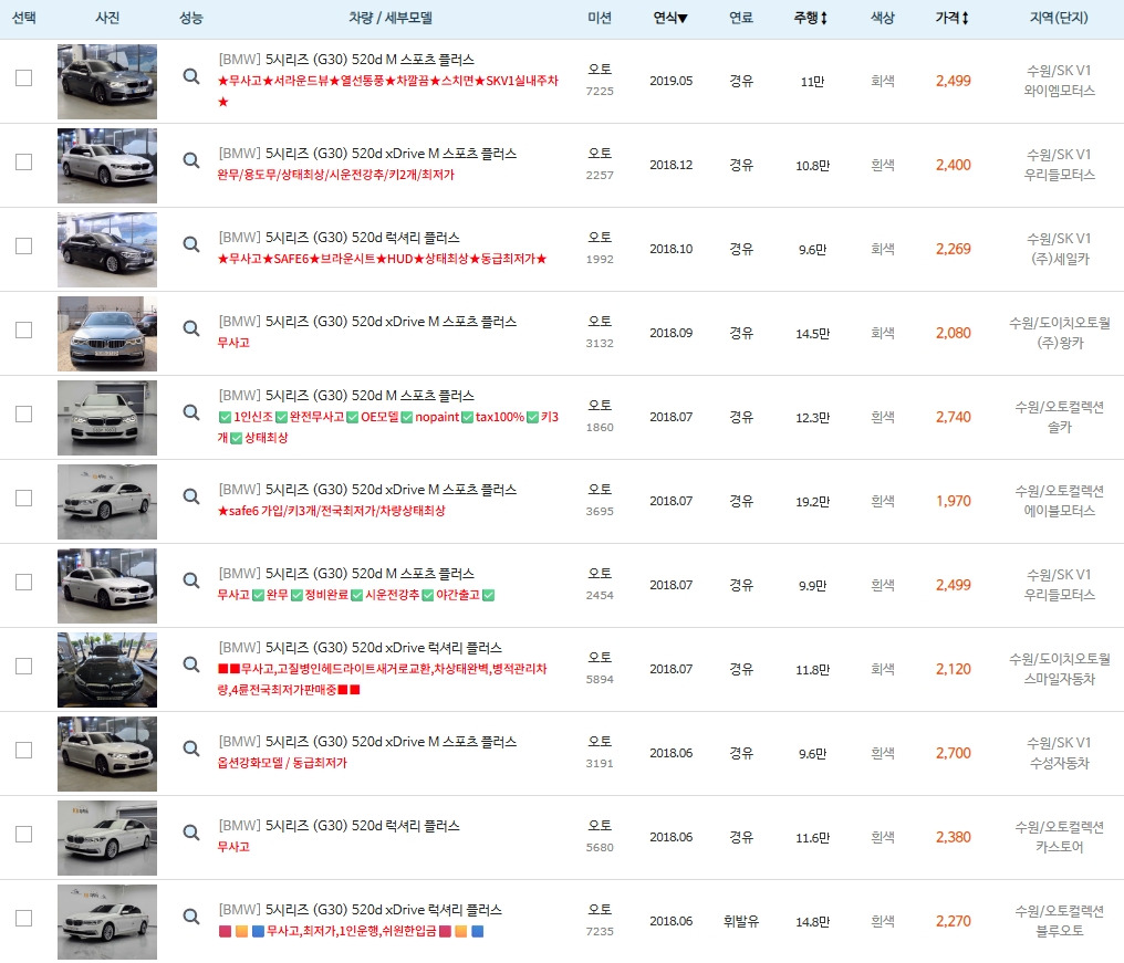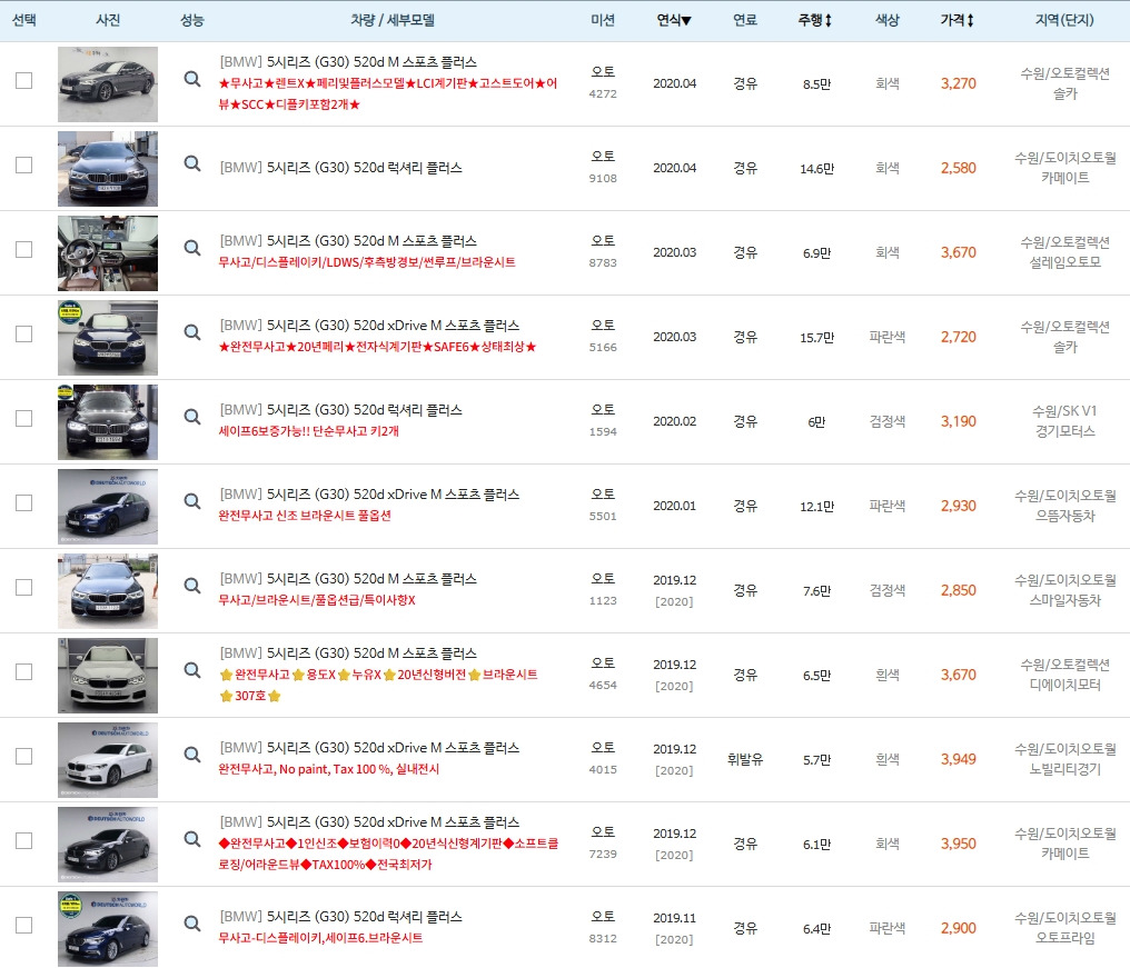 BMW 520D G30에 오늘자 시세를 알아볼게요.