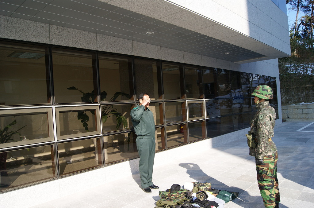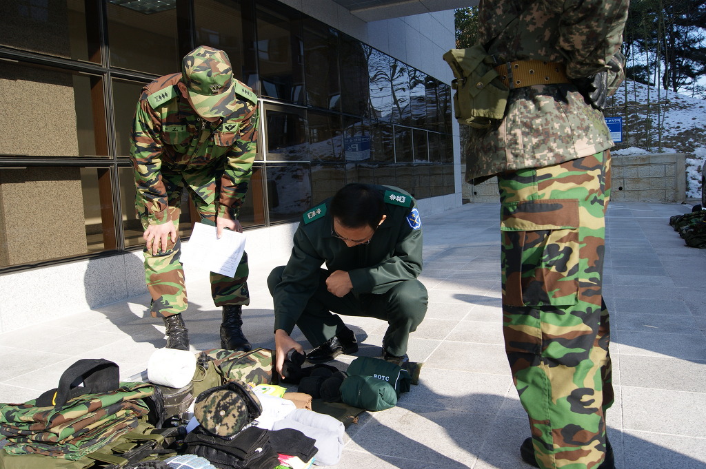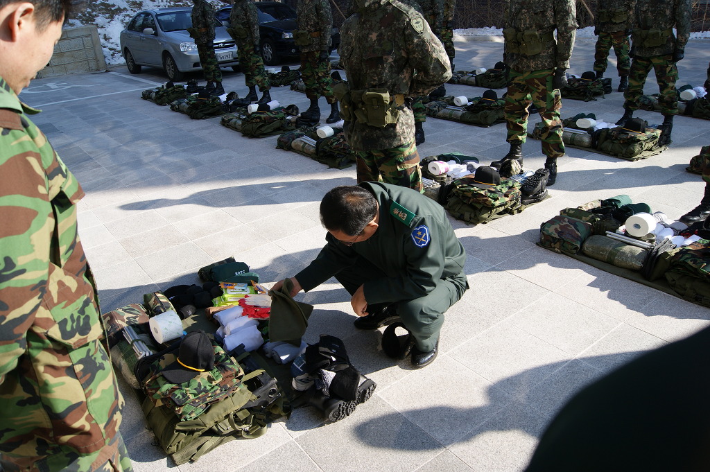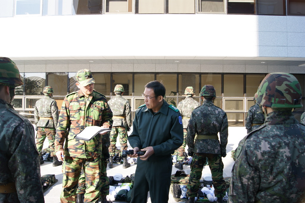 단장님께서 직접 군장물품들을 보시며 부족한 것이 있나 이상있는 물품은 없나 확인하고 계시는 중입니다.