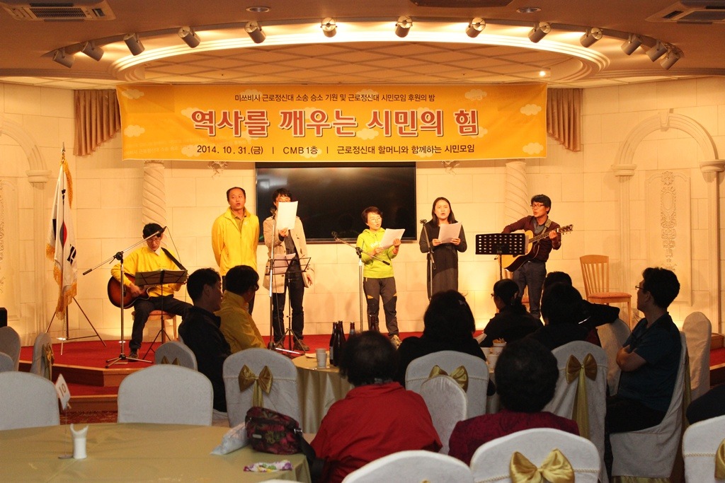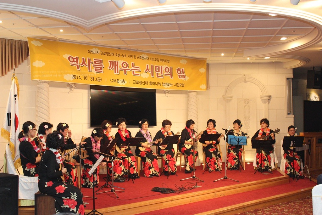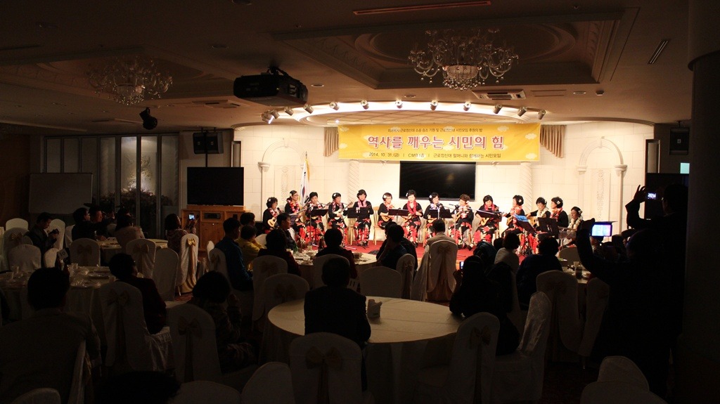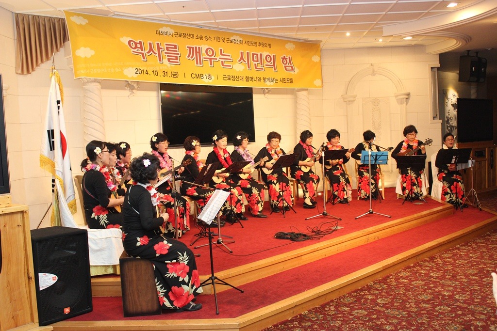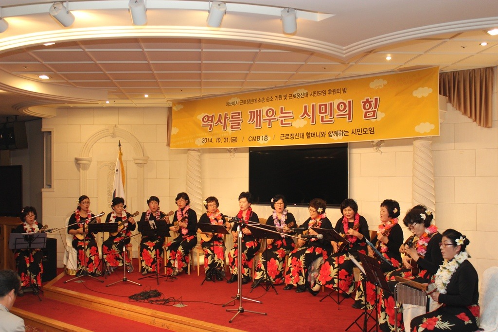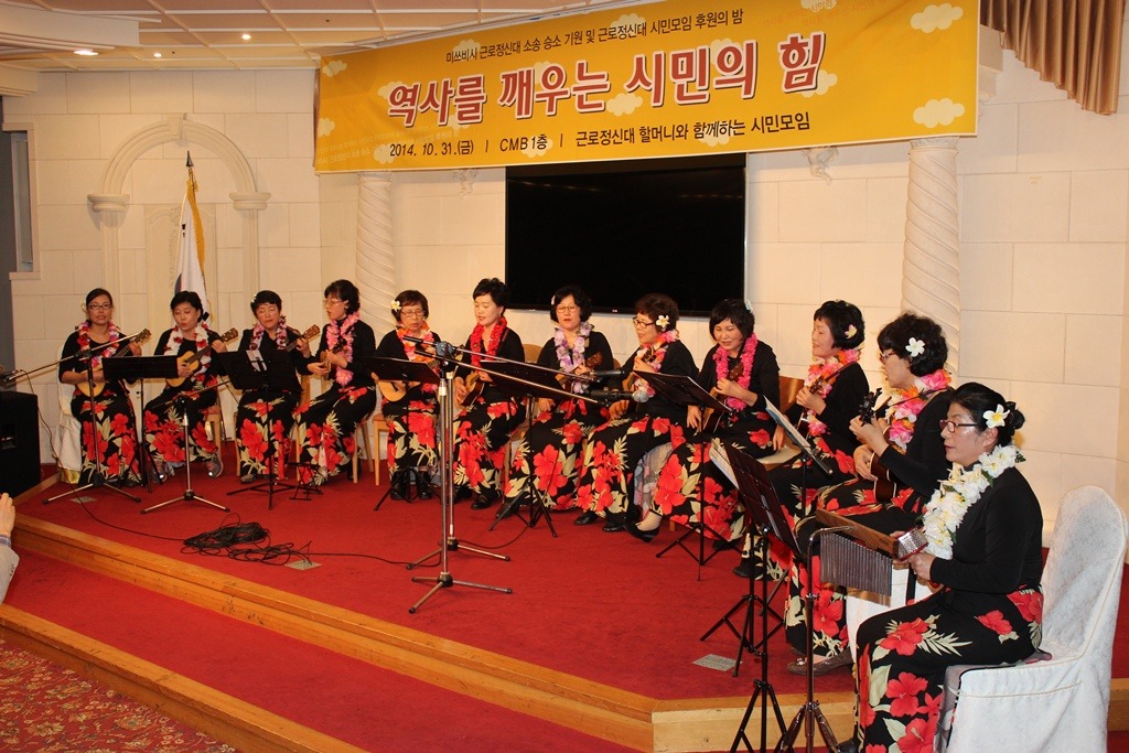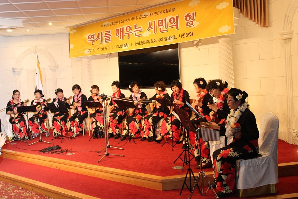 작성자안영숙(몽냥다쿤) 작성시간 14.11.04 무대를 압도하는 광주시여약사회분들의 우크렐레 공연, 박수희 회원의 감동 편지, 노동자교육센터 노래모임의 노래 공연...함께 해주신 수많은 분들,,,잊을 수 없는 후원의밤입니다. 모든 분들께 큰 감사인사 드립니다. 이쁜 사진을 찍어주신 최영호 회원님께도 깊이 감사드립니다. 넙죽!!!