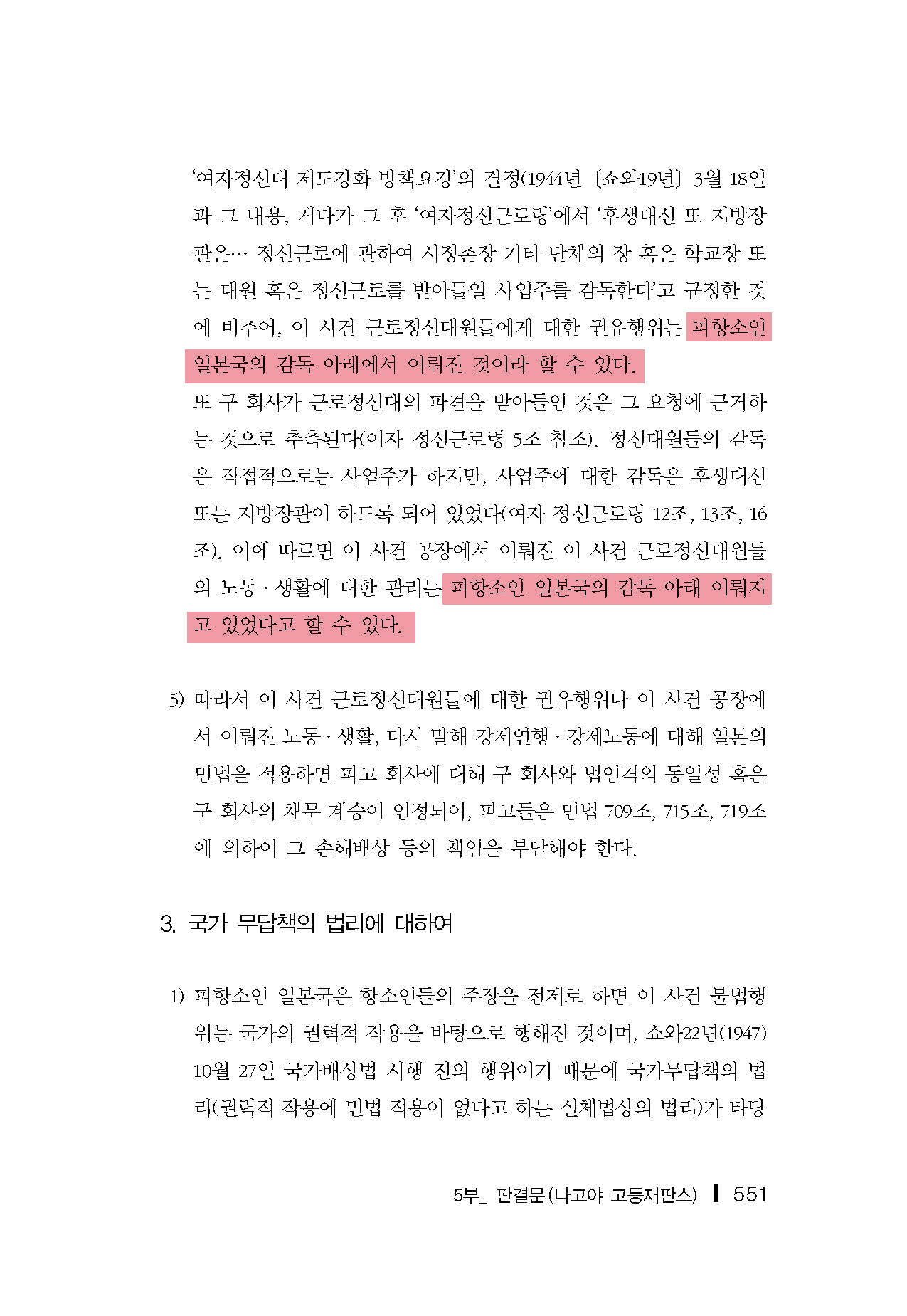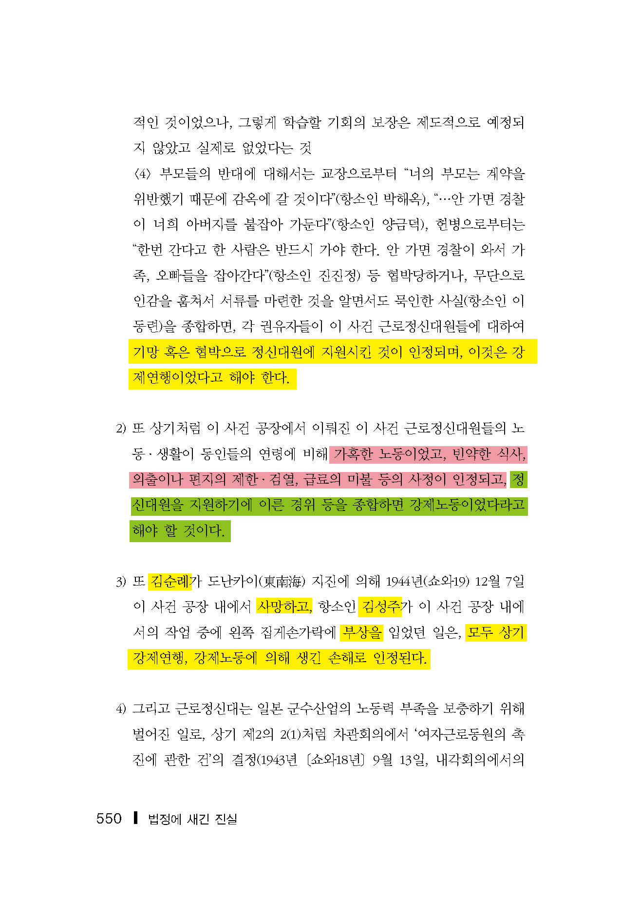 한 예로 나고야고등재판소는 2007년 5월 31일 일본 정부 및 미쓰비시중공업을 상대로 한 근로정신대 재판에서 근로정신대 동원은 명백한 강제연행이며, 강제노동이었다는 사실을 인정하고, 최고재판소에서도 이 사실은 확정된 바 있다.