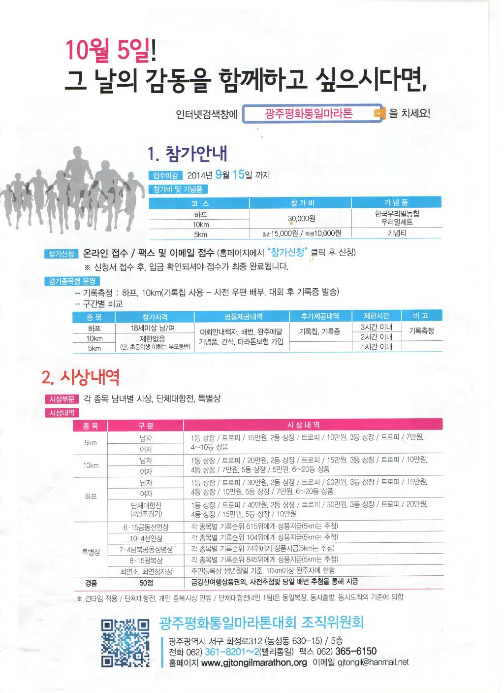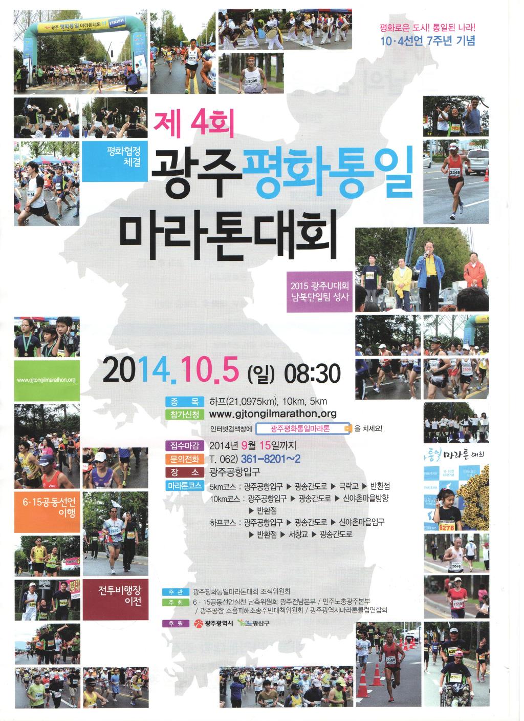 4회 광주평화통일 마라톤대회가 바짝 다가왔습니다^^