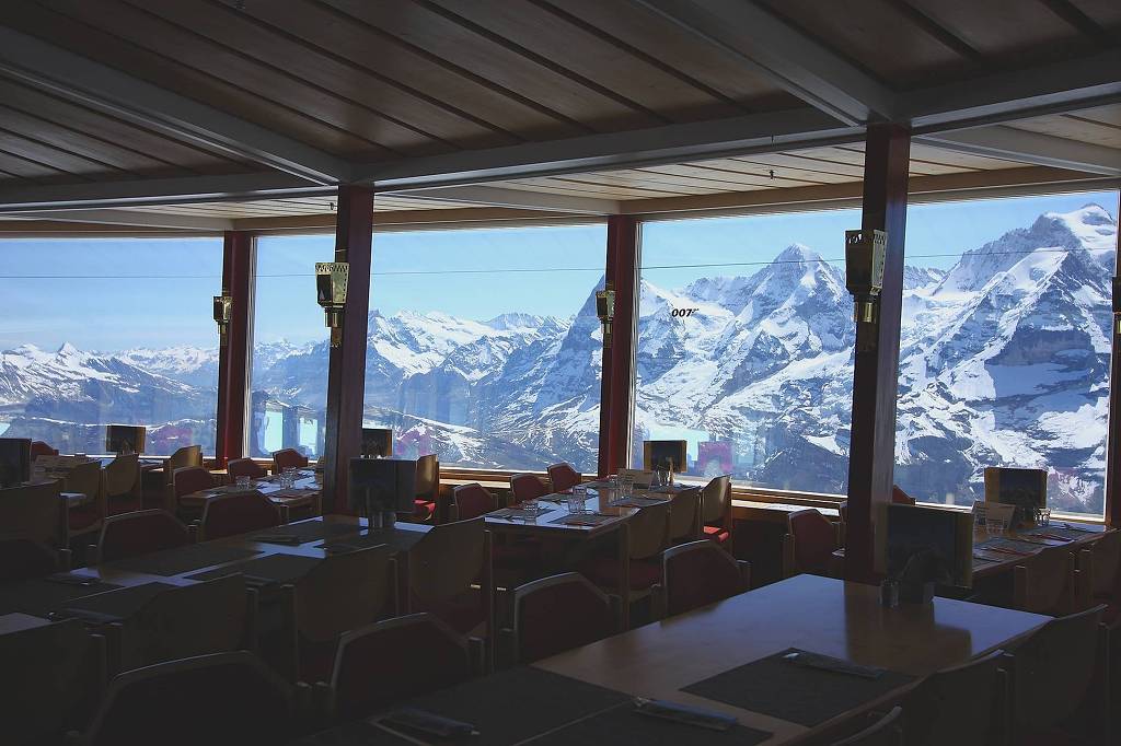 쉴트호른전망대의 식당내부모습 (1시간에 한바퀴 회전함), 건물전체가 회전하고 또 해발3000m이기에 예민한분들은 좀 어지러움.