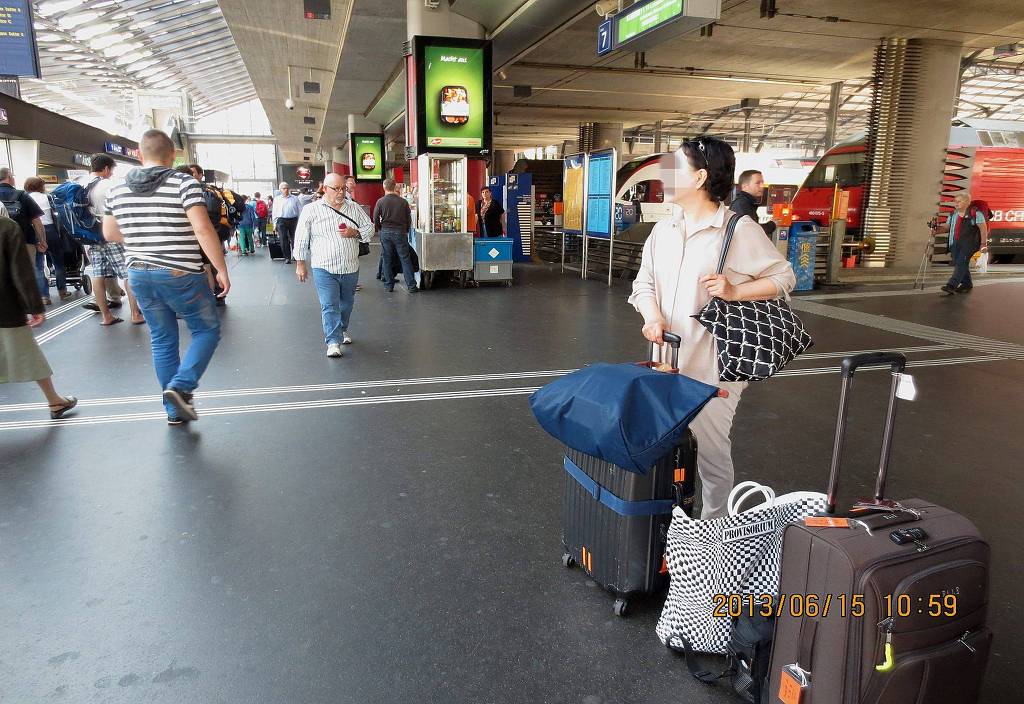 이번배낭여행 마치고 귀국하는날 루체른기차역에서. 여행 출발할때는 각자 소형가방1개씩과(배낭은 가방 속에).카메라가방 1개였는데 몇가지쇼핑후 소형백2개만 추가되었슴 배낭여행할분들 참고하십시요 짐많으면 골병이죠!!