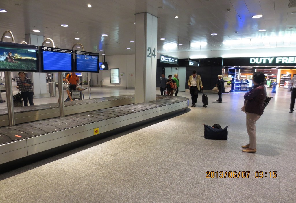 스위스 취리히공항 도착후 수화물 찾을려고 대기중.현지시간6월6일 오후8시