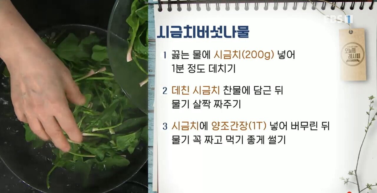 #EBS #최고의요리비결 #최요비 #요리 #레시피 #꿀팁 #노하우 #반찬 #최경숙 #광희 #김동완 #시금치버섯나물 #시금치 #버섯 #나물
