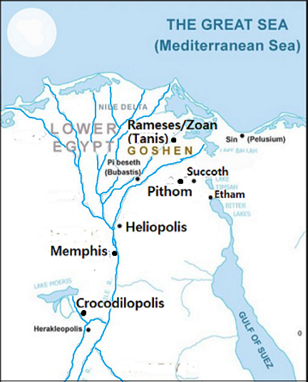 19세기 말에 타니스(Tanis)에서 고대 도시의 유적이 발굴되었다. 타니스는 카이로 동북쪽 160 km 지점으로 나일강 델타의 동북단이다. 타니스에서 고대 도시 아바리스와 라메세스의 유적이 함께 발굴되었는데 고고학자들은 아바리스가 있던 자리에 훗날 라메세스가 건설되었다고 결론 내렸다. 이리하여 타니스는 아바리스와 라메세스로, 타니스에 인접한 지역은 고센으로 알려지게 되었다.