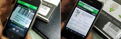 스마트폰에서 바코드를 인식할 수 있는 애플리케이션을 통해 원하는 정보를 검색할 수 있다.