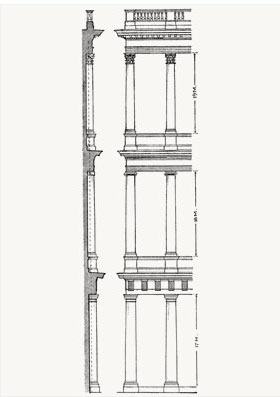 오더를 이용한 층 쌓기. 1층부터 ‘도리스식-오이나식-코린트식’의 순서로 쌓는 오더 층 쌓기는 로마건축의 구조실용주의와 장식주의를 동시에 보여주는 기법이다. | |