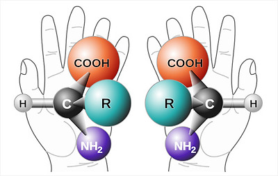 아미노산에는 D형과 L형의 광학이성질체가 있다. 우리 몸과 지구상 생물은 거의 모두 L형 아미노산으로 이루어져 있다.