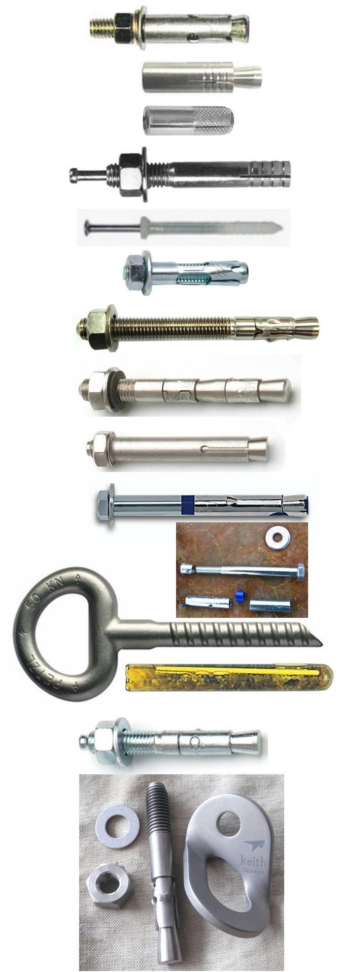 앵커볼트는 용도에 따라 다양한 종류가 있으며, 하나의 분류에서도 재질이나 굵기와 길이는 물론 사용 목적에 따라 다양한 디자인을 가지고 있기도 하다.