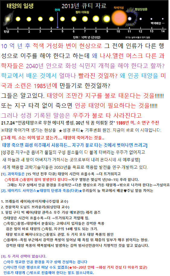 2. 큰 뉴스인 아주 빠른 기후 변화 원인은? 태양이 죽어가는 적색 거성화. 변이 현상