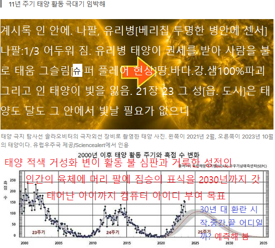 [즉 대환란 아마겟돈 전쟁이 2030년 전일지 중간일지 끝일지 모르지만 제 예측은 2040년 안으로 지구 태양 불로 심판]