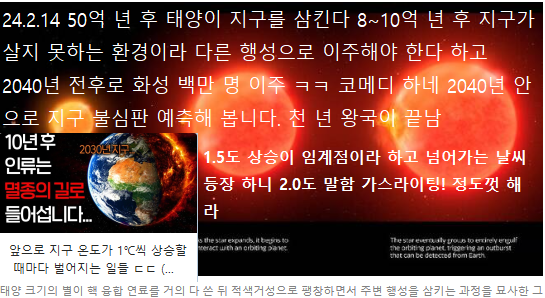 24.3.20 한반도 15년 뒤 한파 없는 따뜻한 겨울 온다. 예측 결과는 계속 태양은 빠르게 적색 거성화 현상으로 가고