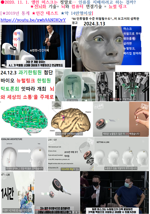 [세계 모든 나라 과학자들이 AI와 로봇과 뉴럴링크 베리칩에 올인 상태입니다.]