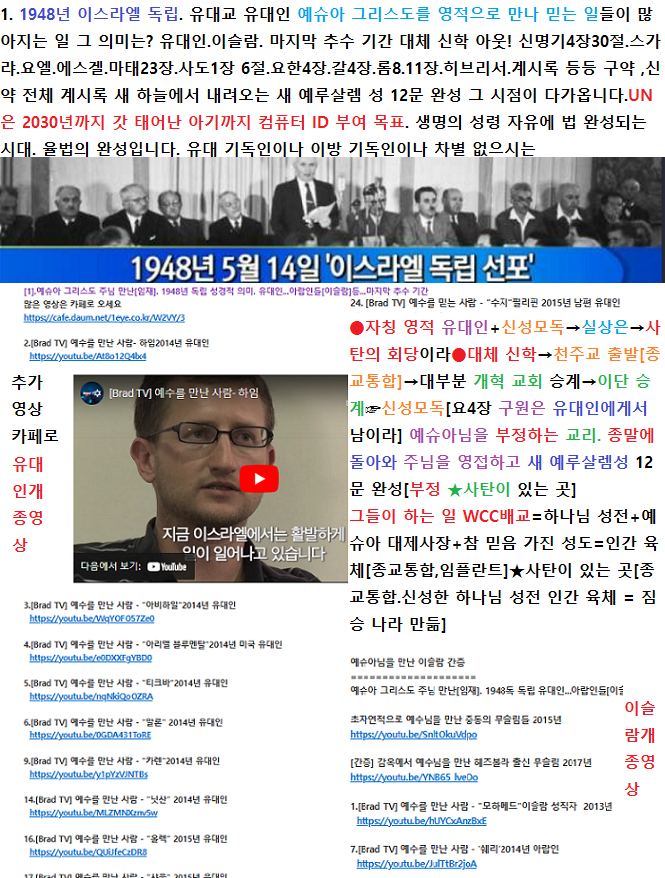 [1].예슈아 그리스도 주님 만난[임재]. 1948년 독립 성경적 의미. 유대인...아랍인들[이슬람]등...마지막 추수 기간