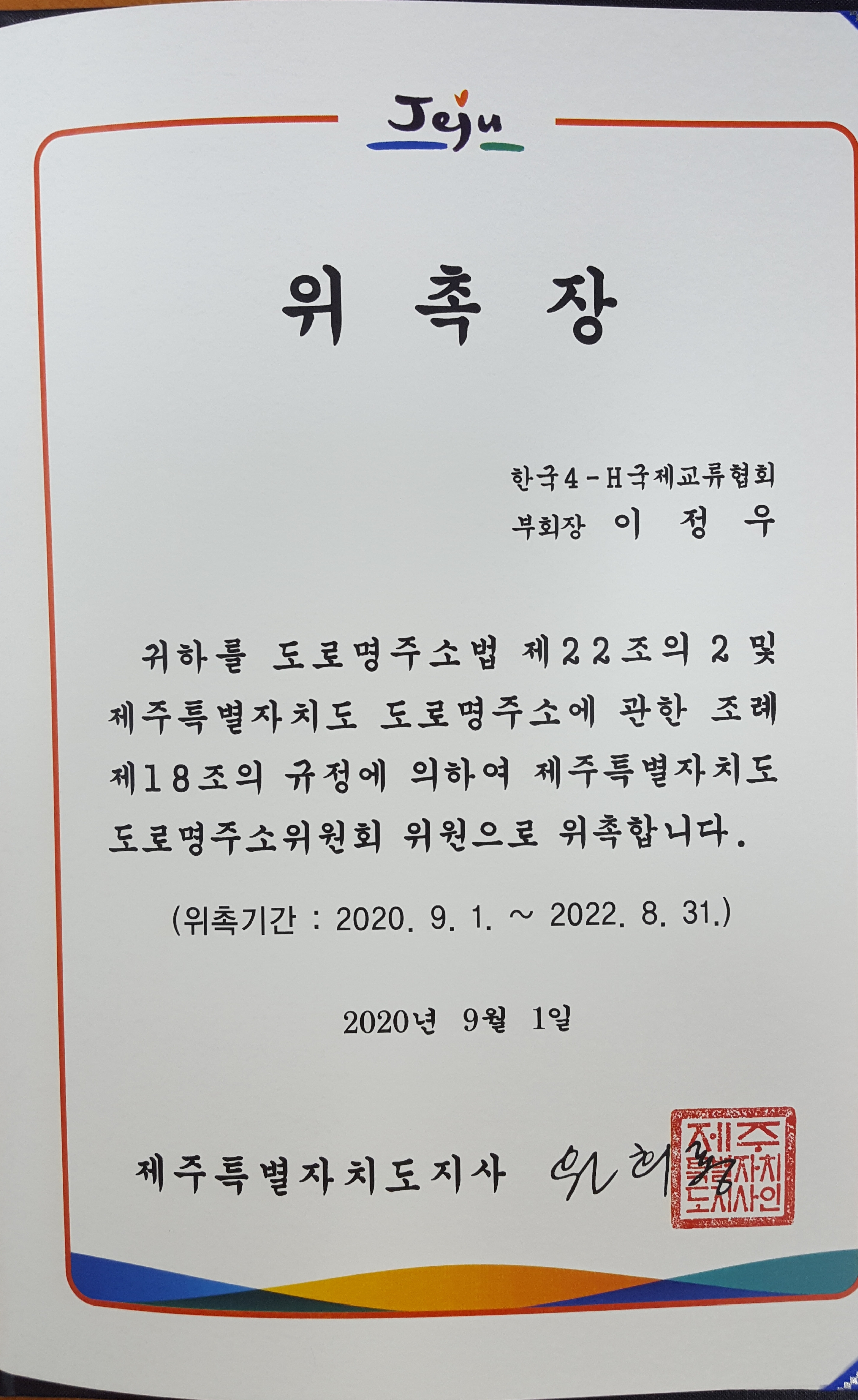 새롭게...새롭게! 작성자이정우(제주)|작성시간20.09.24|조회수9 목록 댓글 0 글자크기 작게가 글자크기 크게가 제주특별자치도도로명주소위원회 제3차 회의를 성공적으로마무리했습니다♡2020.09.22(화) 14:00♡제주특별자치도청 별관 3층 건축심의실♡중문대포지삿개로 도로명부여 등 5건심의 다음검색 현재 게시글 추가 기능 열기 북마크 공유하기 신고 센터로 신고 댓글 댓글 0 댓글쓰기 답글쓰기 댓글 리스트