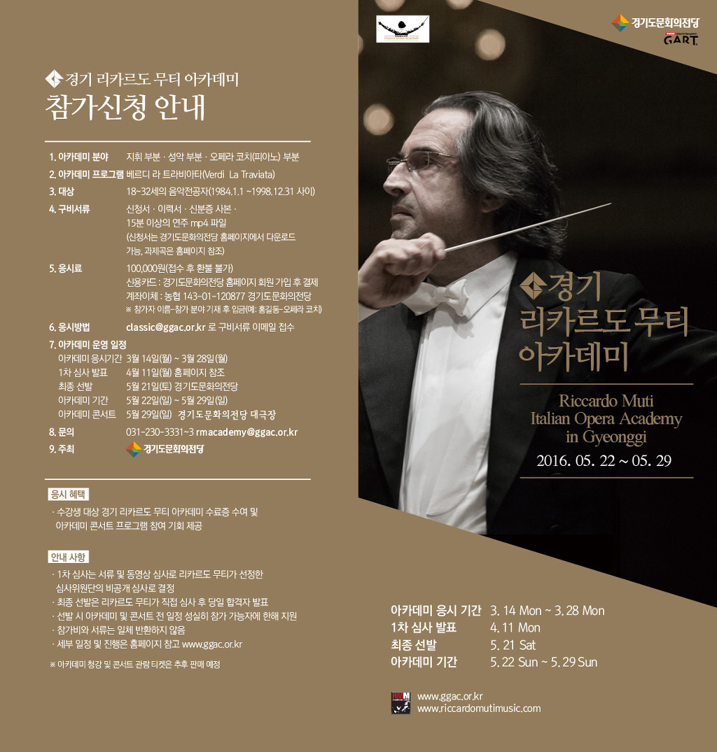 2016 경기 리카르도 무티 아카데미 모집 안내 작성자문화가좋다|작성시간16.03.14|조회수20 목록 댓글 0 글자크기 작게가 글자크기 크게가 다음검색 현재 게시글 추가 기능 열기 북마크 공유하기 신고 센터로 신고 댓글 댓글 0 댓글쓰기 답글쓰기 댓글 리스트