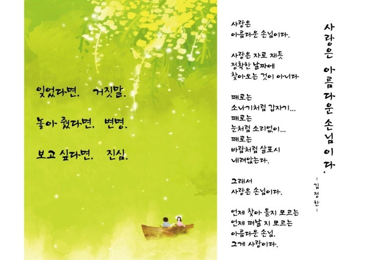 좋은글귀 작성자류이페이|작성시간18.03.29|조회수323 목록 댓글 2 글자크기 작게가 글자크기 크게가 다음검색 현재 게시글 추가 기능 열기 북마크 공유하기 신고 센터로 신고 댓글 댓글 2 댓글쓰기 답글쓰기 댓글 리스트 작성자김팀장 | 작성시간 18.04.04 보고싶다면 진심.. 맞아요.. 가끔 꿈에 나옵니다. 첫사랑 ㅎㅎ 작성자스나 | 작성시간 22.12.17 좋은 글 감사합니다 ~~~ 댓글 전체보기
