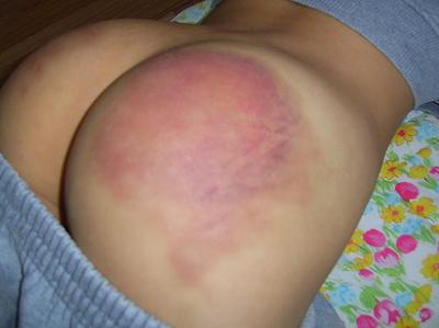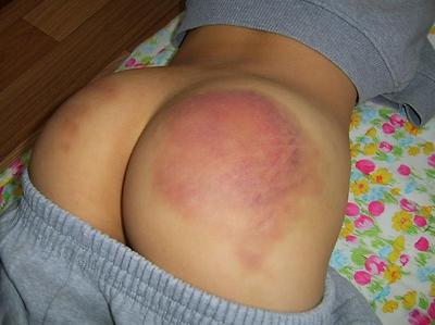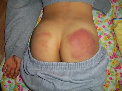 한쪽 엉덩이만 집중적으로 맞았는지 한쪽에만 피멍이 들어 있다. 아마도 코치가 체벌의 강도를 높이기 위해 한쪽만 때린것인지, 아니면 맞은 엉덩이를 때려야 단련이 돼서 덜 아프다고 집중적으로 때린것인지 모르겠다.