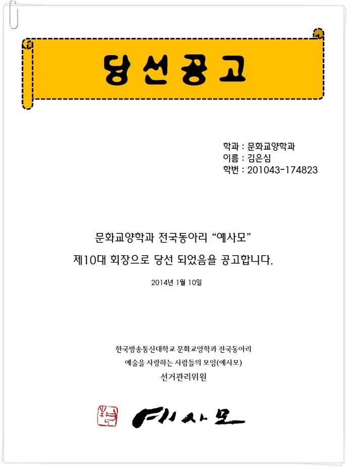 학생회에서의 열정, 예사모에서도 맘껏 발휘하시길 바랍니다. -