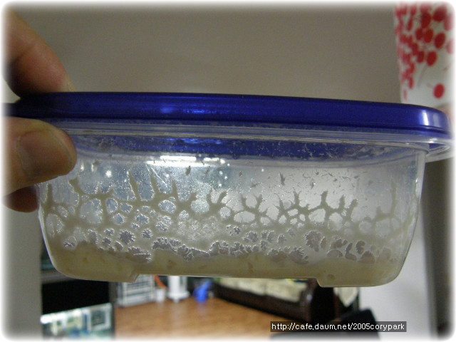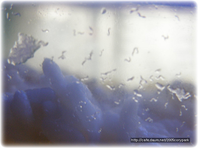마이크로웜 가라앉은 모습입니다.. 위에부분은 물이고 바닥에 하얗게 있는게 마이크로웜 덩어리입니다..