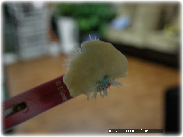 이걸로 배지윗부분만 싹. 훑으면 저렇게 칫솔에 묻어나옵니다..