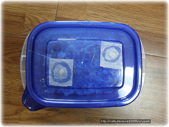 용기가 작을경우 하나만 뚫어도 되구요.. 구멍크기는 직경 5미리 정도가 적당하다고 하네요..