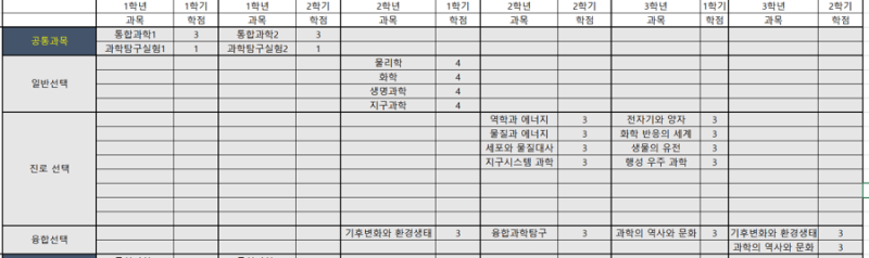 과학과의 융합 선택 과목인