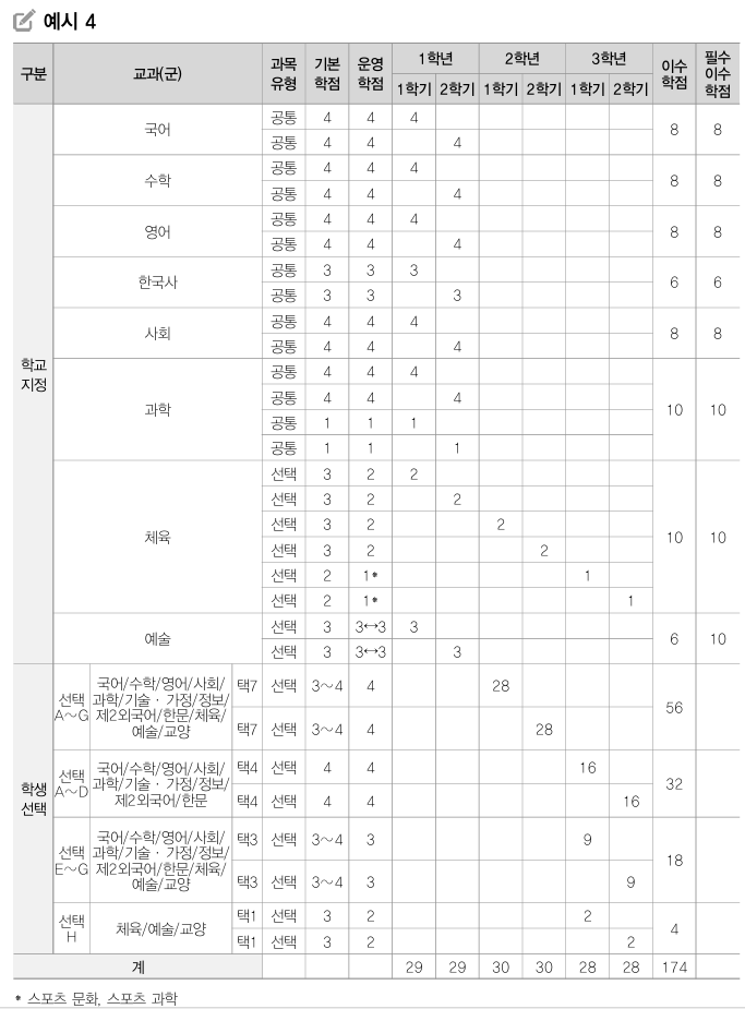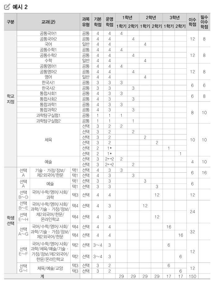 | 체육·예술 /과학탐구실험 | - | A·B·C | - | - | - | - | |