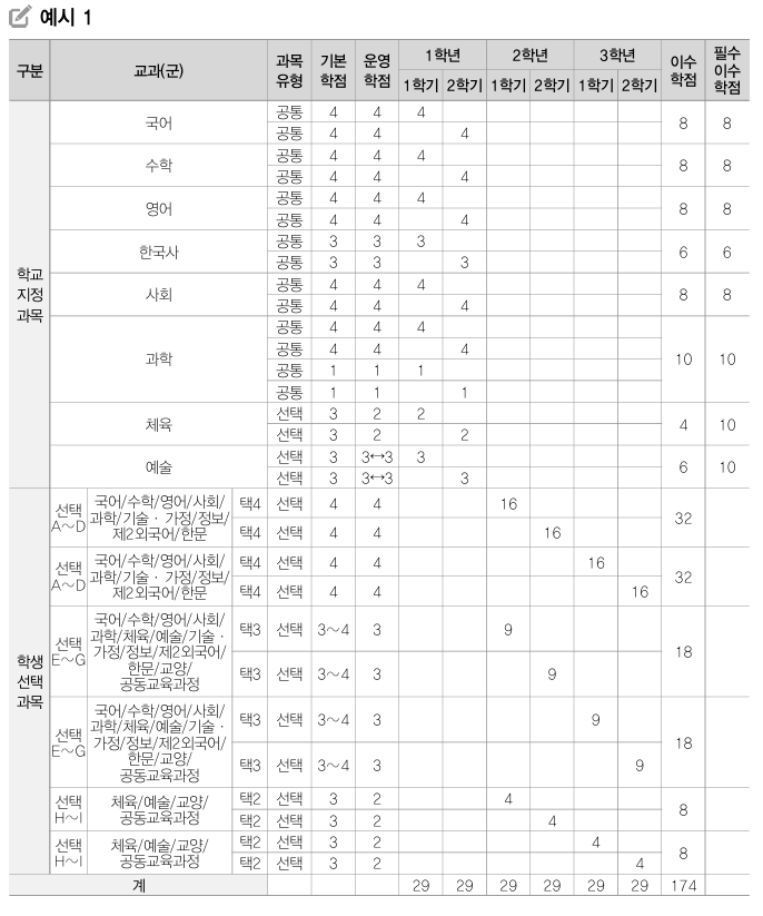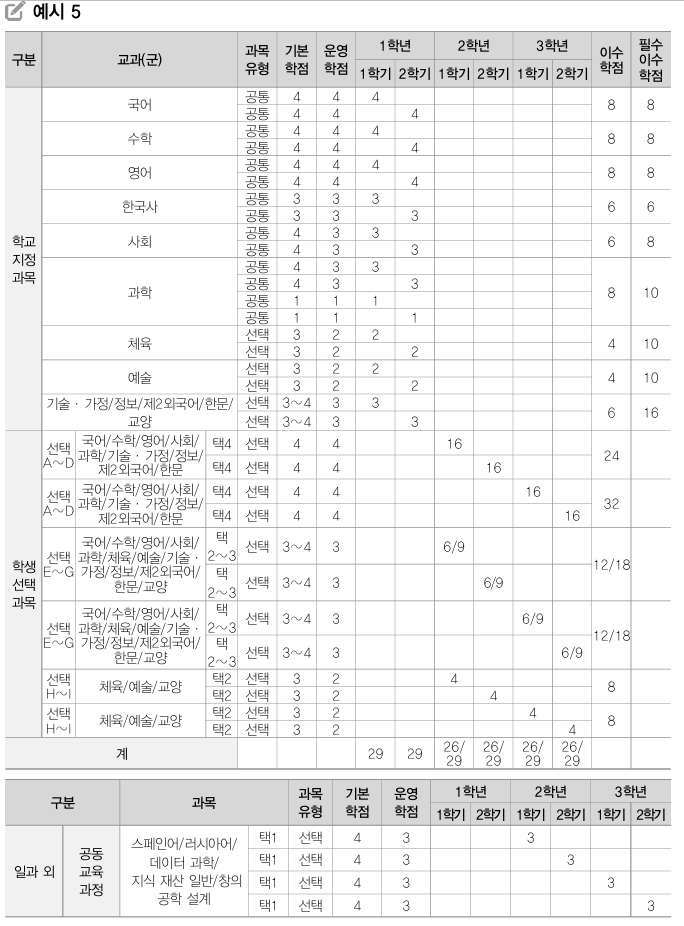 | 보통교과 | ○ | A‧B‧C‧D‧E | 5등급 | ○ | ○ | ○ | |