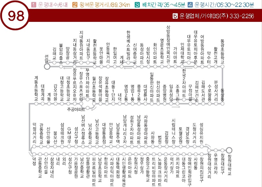 노선 번호 : 김해 98번 [일반/좌석 겸용]