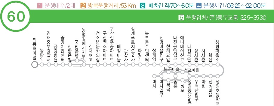 ☎ (주)동부교통 : (055) 325-3530(*시내버스 도착안내 홈페이지 : http://bus.gimhae.go.kr/)